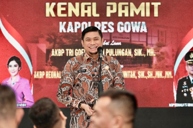 Gowa Targetjurnalis.id – Bupati Gowa, Adnan Purichta Ichsan menghadiri Kenal Pamit Kapolres Gowa dari pejabat lama, AKBP Tri Gofaruddin kepada Pejabat Baru, AKBP Reonald Truly Sohumuntal Simanjuntak, di Baruga Tinggimae Rumah Jabatan Bupati Gowa, Jumat (6/1/2023).