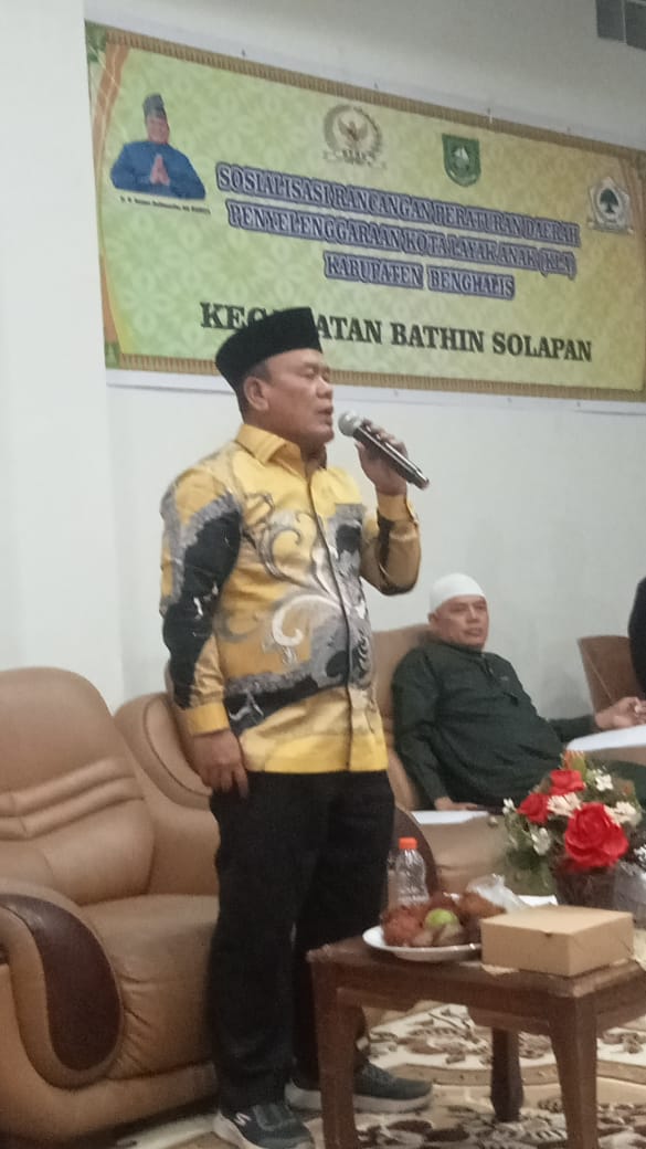 Bersama tokoh masyarakat , figur publik, sekaligus Anggota Dewan Perwakilan Rakyat Daerah ( DPRD) Dapil V Kabupaten Bengkalis dari fraksi Partai Golkar Ir. H. Samsu Dalimunthe ( Samda) menyelenggarakan ” kegiatan Sosialisasi Rancangan Peraturan Daerah (Ranperda) Kota Layak Anak (KLA) yang digelar di Aula Klinik Samda Km 4 Desa Pematang Obo, Kecamatan Bathin Solapan, Jumat malam (5/12).