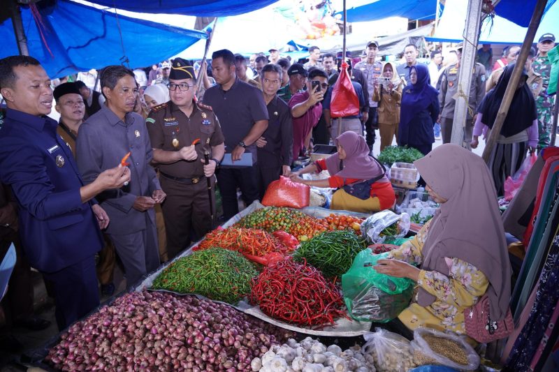 Bupati Pringsewu, H. Riyanto Pamungkas, bersama Forkopimda Pringsewu turut hadir Kajari Pringsewu Raden Wisnu Bagus Wicaksono, SH., M. Hum, Ketua DPRD Pringsewu Suherman, SE, Dandim 0424 Tanggamus yang diwakili oleh Pabung Pringsewu Kapten Inf Rahmat Hartanto.S.sos, Perwakilan Polres Pringsewu, turut hadir juga Kepala BPS Pringsewu Eko Purnomo, SST., MM, rombongan melakukan inspeksi di pasar tradisional untuk memantau harga dan ketersediaan kebutuhan pokok pada minggu pertama Ramadhan 1446 H, Senin (10/3/2025). Pasar Banyumas menjadi titik pertama dalam rangkaian kunjungan yang dilakukan oleh Bupati Pringsewu bersama jajaran pemerintah daerah untuk memastikan kelancaran pasokan bahan pokok selama bulan Ramadhan.