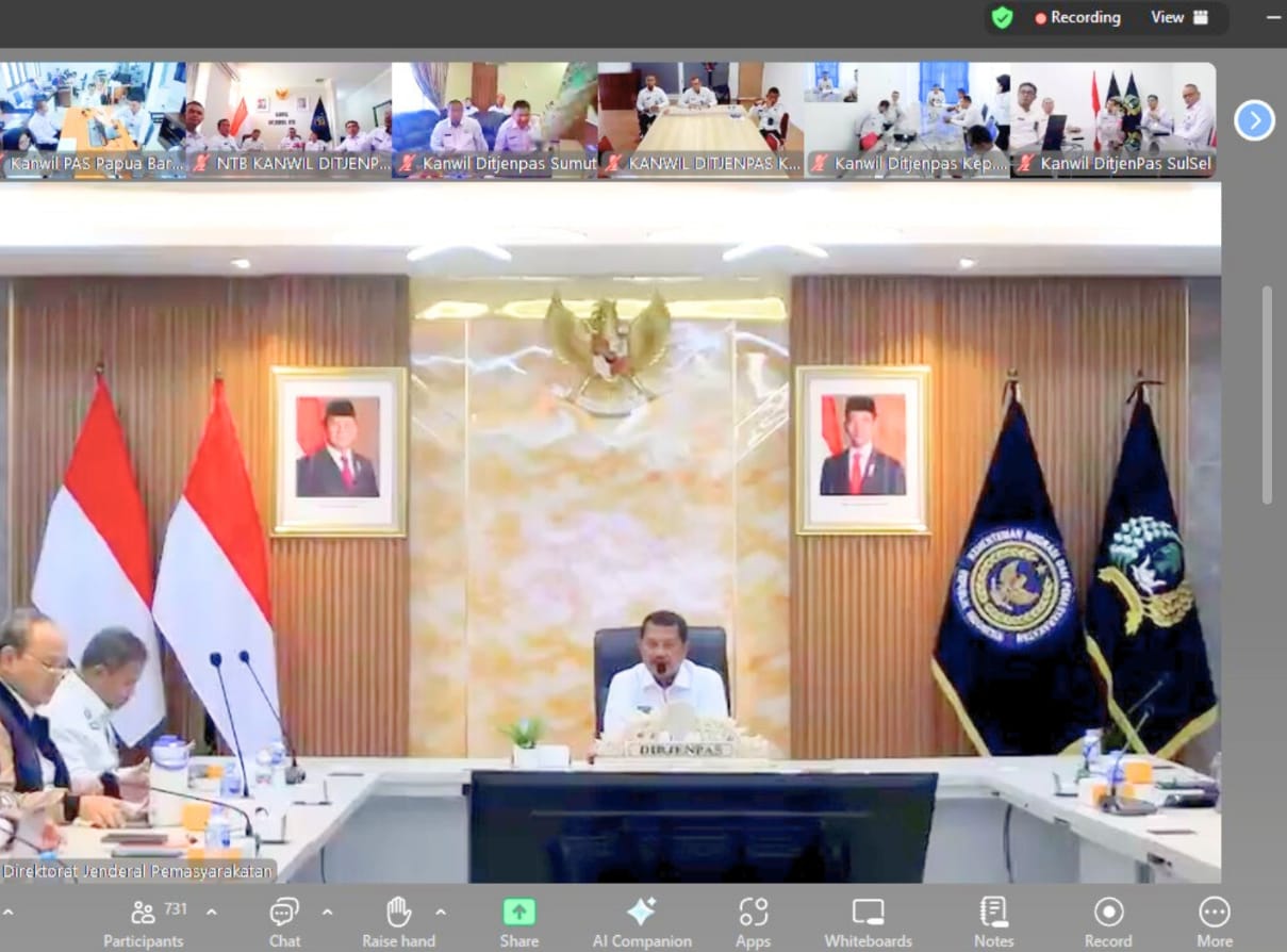 Kalapas Akhmad Herriansyah bersama jajaran pejabat struktural dan staf Lembaga Pemasyarakatan (Lapas) Kelas IIA Banjarmasin mengikuti arahan dari Direktur Jenderal Pemasyarakatan (Dirjenpas), Mashudi, yang disampaikan secara daring pada Senin (14/07). Kegiatan ini berlangsung di Aula Lapas Banjarmasin dan diikuti secara tertib oleh seluruh peserta.