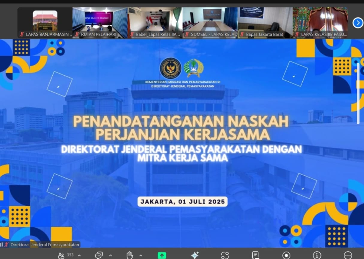 Kegiatan ini juga diikuti oleh para Kakanwil Ditjenpas dan Kepala Unit Pelaksana Teknis (UPT) pemasyarakatan di seluruh Indonesia secara daring, sebagai wujud dukungan terhadap langkah Ditjenpas dalam memperluas jejaring kerja sama yang berdampak langsung bagi peningkatan layanan pemasyarakatan.