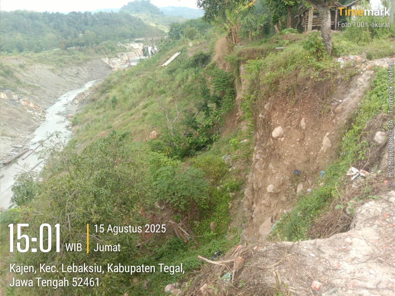Sebanyak 87 bangunan rumah warga di Desa Kajen, Kecamatan Lebaksiu, Kabupaten Tegal, terancam akibat bencana tanah bergerak dan longsor.