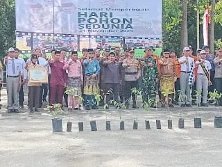 Wakil Ketua I DPRD Kabupaten Bengkalis Muhammad Arsya Fadillah hadir dan berpartisipasi menanam pohon bersama Kapolres Bengkalis AKBP Budi Setiawan, unsur Forkopimda lainnya.
