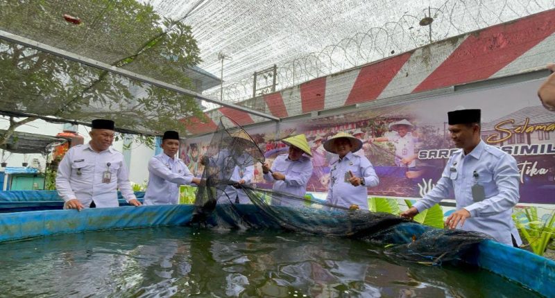 Selain meninjau fasilitas, Kakanwil Ditjenpas Kalsel, Bapak Mulyadi juga melakukan Panen Ikan Nila di kolam bioflok SAE Lapas Narkotika Karang Intan. Dalam panen tersebut, total ikan yang berhasil dipanen mencapai 50 kg.