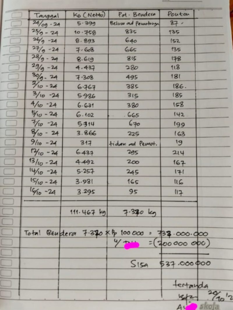Hal ini setelah redaksi media ini menerima salah satu bukti, berupa rekapitulasi yang diduga merupakan hasil dari penambangan ilegal di perairan Keranggan.