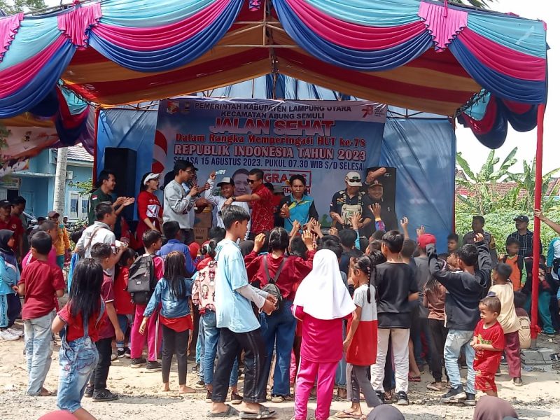 Dalam rangka meyambut HUT RI Yang ke-78 kecamatan Abung Semuli, firman S.E MM Camat Abung Semuli” Dalam rangka merayakan kami memperingati hari ulang tahun republik Indonesia yang ke 78,kami mengajak masyarakat tujuh Desa,jalan sehat dan senam masal yang di adakan di kecamatan Abung Semuli.
