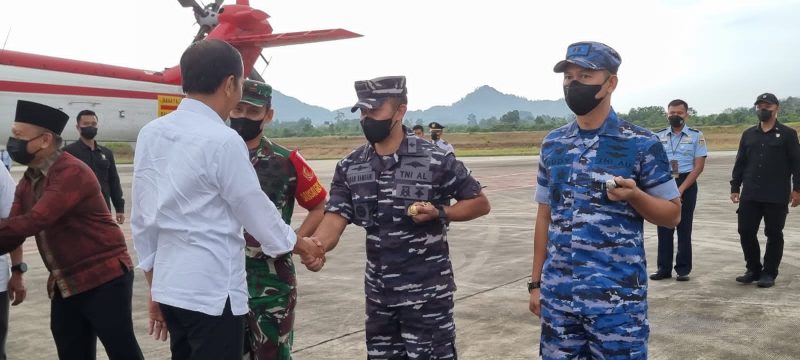 Pangkalpinang Targetjurnalis.id -Danlanal Bangka Belitung Kolonel Laut (P) Dadan Hamdani, S.Tr. Hanla., CTMP., CRMP., CIQaR bersama Gubernur dan Forkopimda Kepulauan Bangka Belitung melaksanakan penyambutan Presiden RI Ir. Joko Widodo dalam rangka kunjungan kerja di Provinsi Kepulauan Bangka Belitung bertempat di Bandara Depati Amir Pangkalpinang,Kamis 20/10/2022.