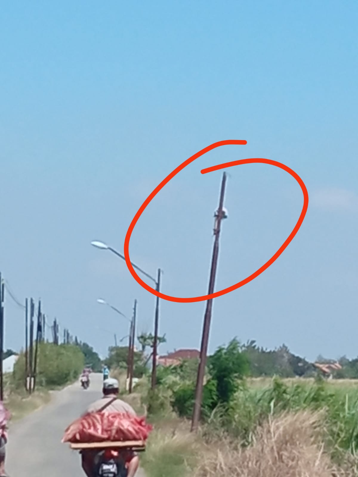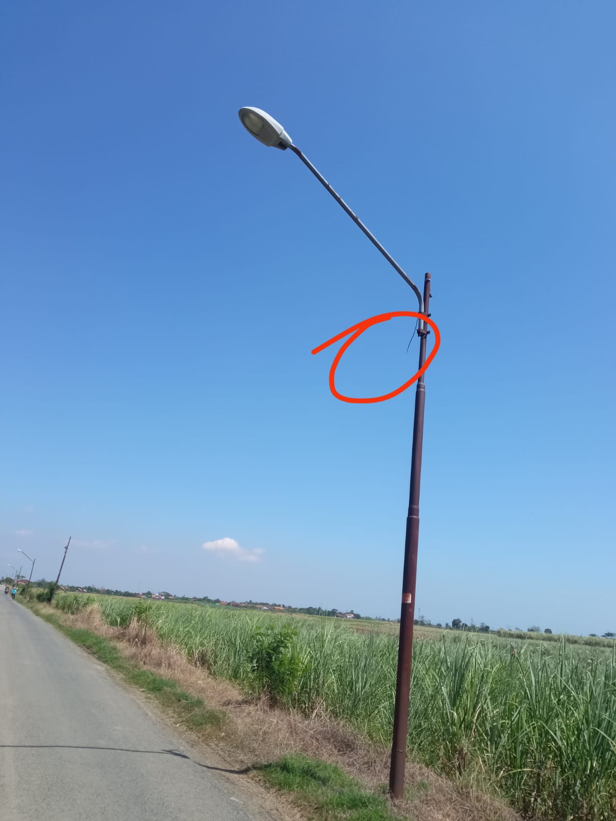 Sepanjang jalan ini semua kabel awal mula kendor dan lama lama ko pada putus apakah ini di rusak atau akibat yang lain saya tidak tahu , Kalau angin kencang saja di sini lumayan mas sampai kadang tiang PJU saja bergetar terkena terpa’ an angin kencang apa mungkin kabel kendor dari tiupan agin awal nya, ya bisa jadi menurut