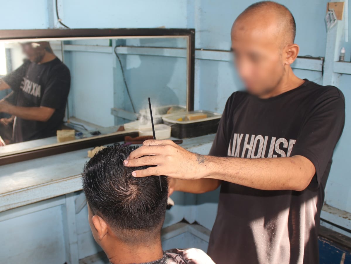 Banjarmasin, Targetjurnalis.id — Meski berada di balik tembok pembatas, warga binaan Lapas Kelas IIA Banjarmasin tetap bisa menjaga penampilan berkat layanan barbershop yang tersedia…