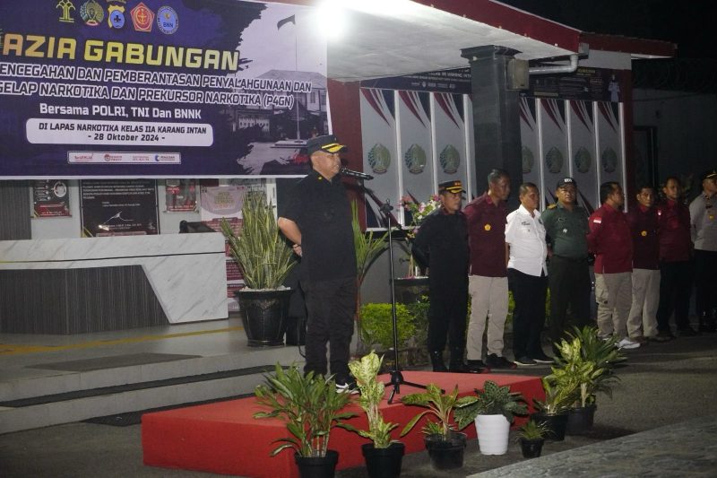 Lembaga Pemasyarakatan (Lapas) Narkotika Kelas IIA Karang Intan langsungkan razia gabungan bersama Satuan Operasional Kepatuhan Internal Unit Pelaksana Teknis (UPT) Pemasyarakatan se-Banjar Raya, jajaran Komando Rayon Militer 1006-05 Karang Intan, Kepolisian Sektor Karang Intan, dan Badan Narkotika Nasional Kota Banjarbaru, Senin (28/10) malam. Razia gabungan dikomandoi langsung Kepala Divisi Pemasyarakatan Kantor Wilayah Kementerian Hukum dan Hak Asasi Manusia (Kemenkumham) Kalimantan Selatan, Said Mahdar.