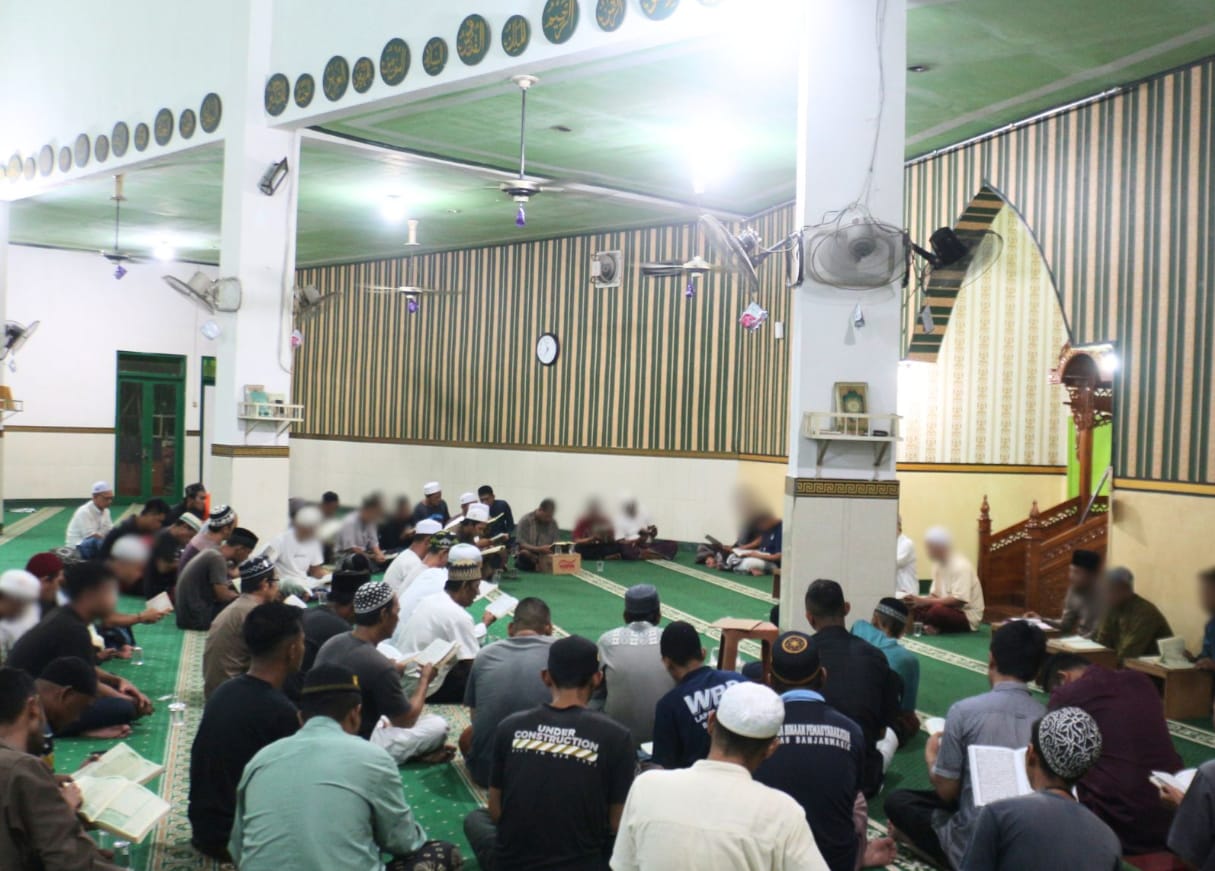Warga Binaan Pemasyarakatan (WBP) yang tergabung dalam kelompok Santri WBP Lapas Kelas IIA Banjarmasin melaksanakan kegiatan rutin malam Jumat di Masjid Baabud Taqwa, Kamis (09/10).