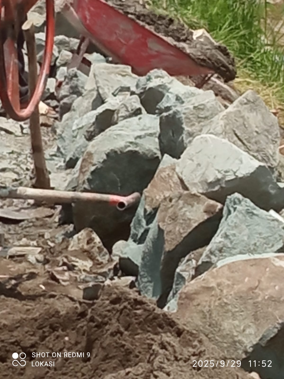 Mepakai batuan blontos dan di pecah sendiri itu pun batu nya bisa di angap abal abal tidak masuk dalam mutu yang benar, dan pasir nya pun. Semacam mengumpal , bukan pasir untuk pasangan batu , semacam lemah
