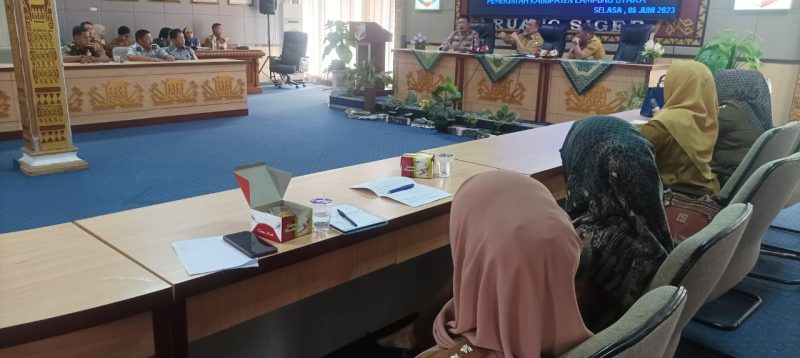 KOTABUMI – Pemerintah Kabupaten Lampung Utara menggelar Rapat Koordinasi (Rakor) dalam rangka persiapan menyambut HUT Kabupaten Lampung Utara ke-77 Tahun 2023 di ruang Siger Setdakab Lampaung Utara, Selasa (06/06/2023).