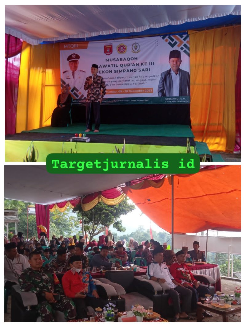 .”Ketua MTQ Darto S.H.menyampaikan ucapan terima kasih kepada Apratur Pemerintahan Pekon Simpang Sari yang sudah menyelenggarakan MTQ yang ke Tiga ini.