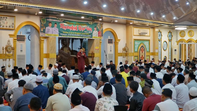 Rohil – Target jurnalis.id. Pemerintah Kabupaten Rokan Hilir (Rohil) menggelar peringatan Nuzul Quran pada malam 17 Ramadhan 1444 H. Acara tersebut dipusatkan di Masjid Agung Al-Ikhlas, Bagansiapiapi, Jumat (7/4/2023) malam.