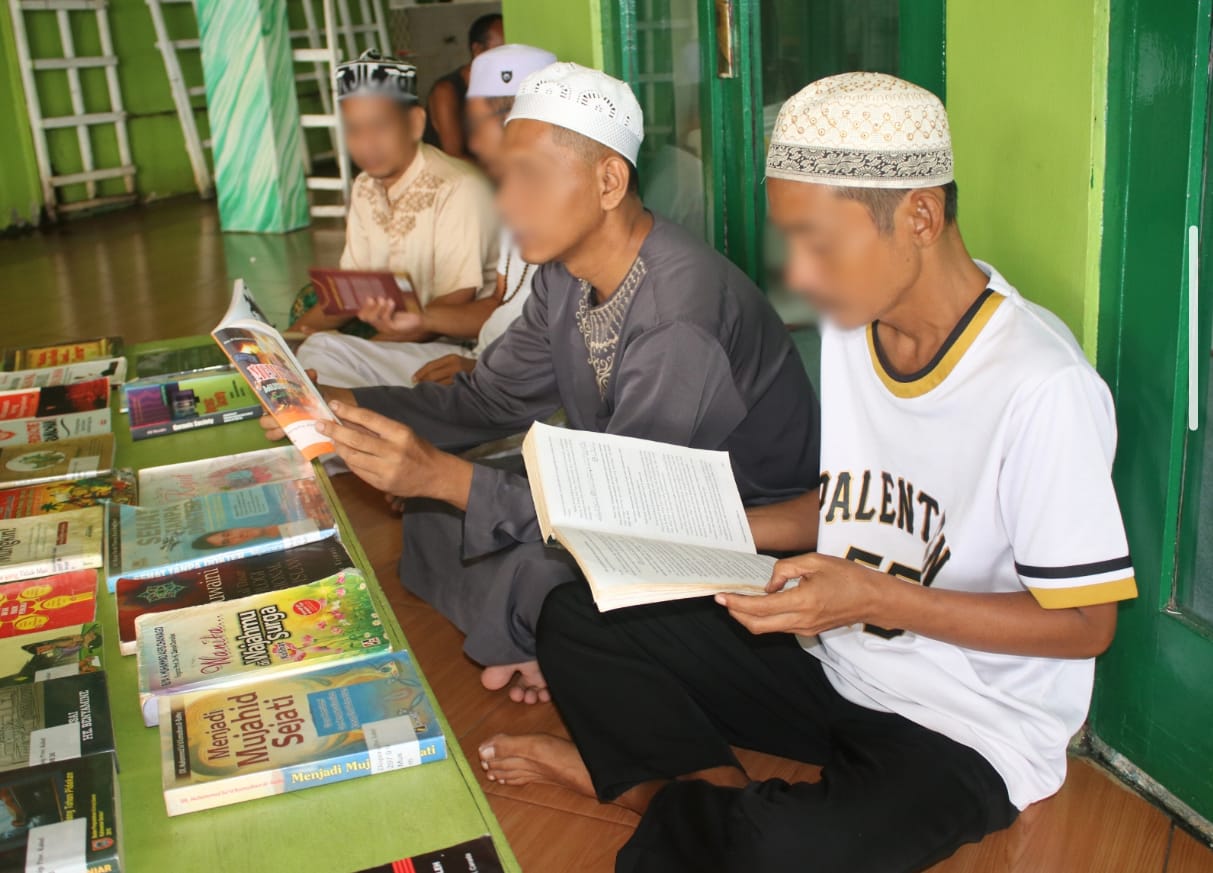 Keberadaan perpustakaan masjid menjadi pelengkap penting dari pembinaan kepribadian di Lapas Banjarmasin. Selain sebagai tempat ibadah, Masjid Baabud Taqwa juga menjadi pusat pembelajaran yang menumbuhkan semangat membaca dan cinta ilmu pengetahuan di kalangan warga binaan. (Lapas Banjarmasin)