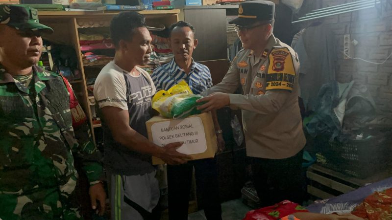 Polsek Belitang III bersama Koramil 403-04 Belitang,memberikan Bantuan Sosial berupa Sembako kepada masyarakat yang membutuhkan.Bantuan sosial tersebut di serahkan langsung kepada ibu Yuliana yang menderita sakit Benjolan pada bagian Mata,warga Desa Kuto Sari,kecamatan Belitang III dan kepada ibu Rita Susanti yang menderita Patah Tulang rusuk akibat rumahnya terkena Bencana Alam Angin Puting Beliung,warga Kuto Sari,kecamatan Belitang III,kabupaten Oku Timur,provinsi Sumsel.Bantuan ini merupakan kegiatan sosial dalam rangka Polri peduli dan Berbagi kepada masyarakat yang membutuhkan khususnya diwilayah Hukum Polsek Belitang III,polres Oku Timur,Polda Sumsel,Rabu (23/10/2024).