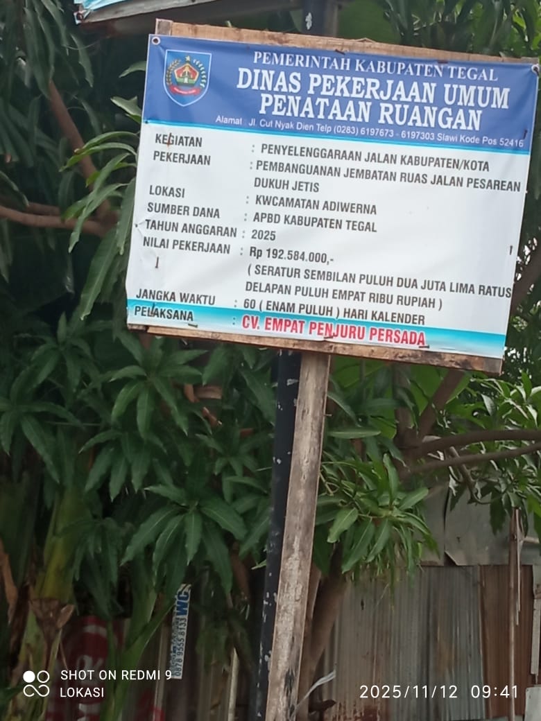 Pesarean , perbaikan dan pelebaran jembatan jetis Desa Pesarean sudah melalui prosesur yang benar , menurut pelaksana dari rekanan.