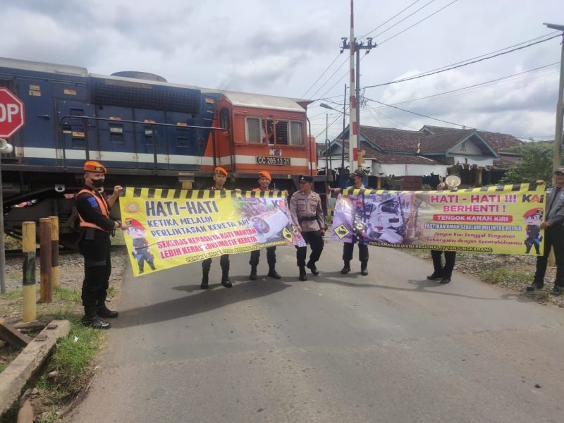 PT Kereta Api Indonesia (Persero) melalui unit Pam Stasiun Kotabumi Drive IV Tanjung Karang tak pernah lelah untuk terus melakukan sosialisasi guna mengingatkan para pengguna jalan agar selalu mematuhi rambu lalu lintas saat melintasi pelintasan sebidang kereta api, Selasa (7/2/23).