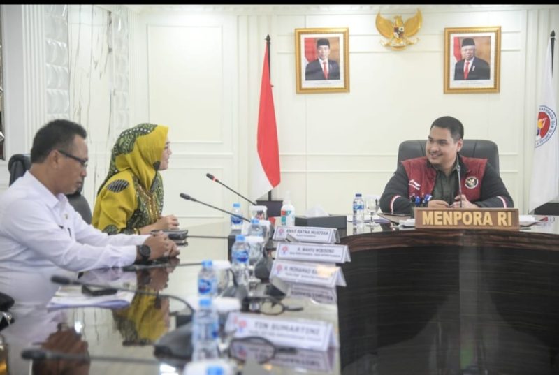 Purwakarta-targetjurnalis.id-Menyelaraskan program-program olahraga masyarakat dan kepemudaan di Purwakarta dengan program nasional. Bupati Purwakarta Anne Ratna Mustika dan jajaran Disporaparbud temui Menteri Pemuda dan Olahraga Republik Indonesia (Menpora RI) Dito Ariotedjo di Jakarta, Rabu 03 Mei 2023.