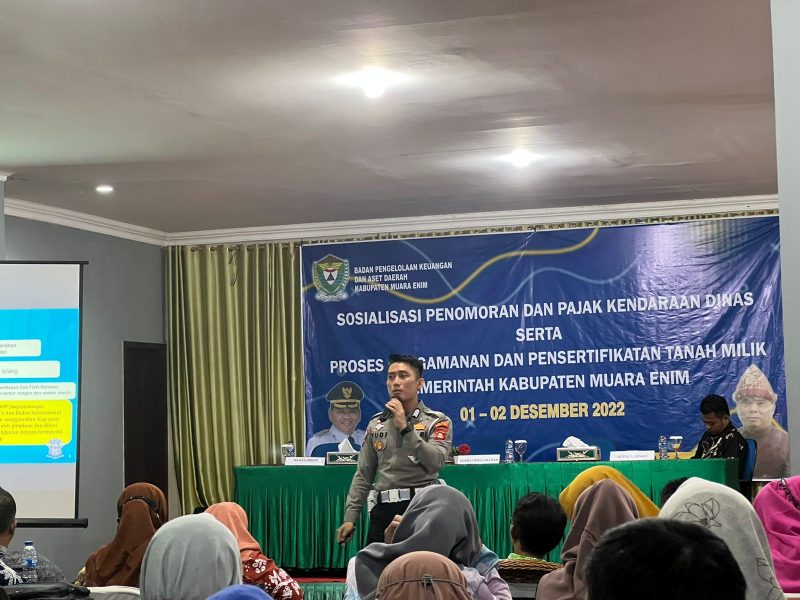 Dalam Acara Sosialisasi Penomoran dan Pajak Kendaraab Bertujuan memberikan pencerahan kepada mereka dalam pengurusan pergantian nomor polisi (NRKB) kendaraan dinas di kabupaten muara enim