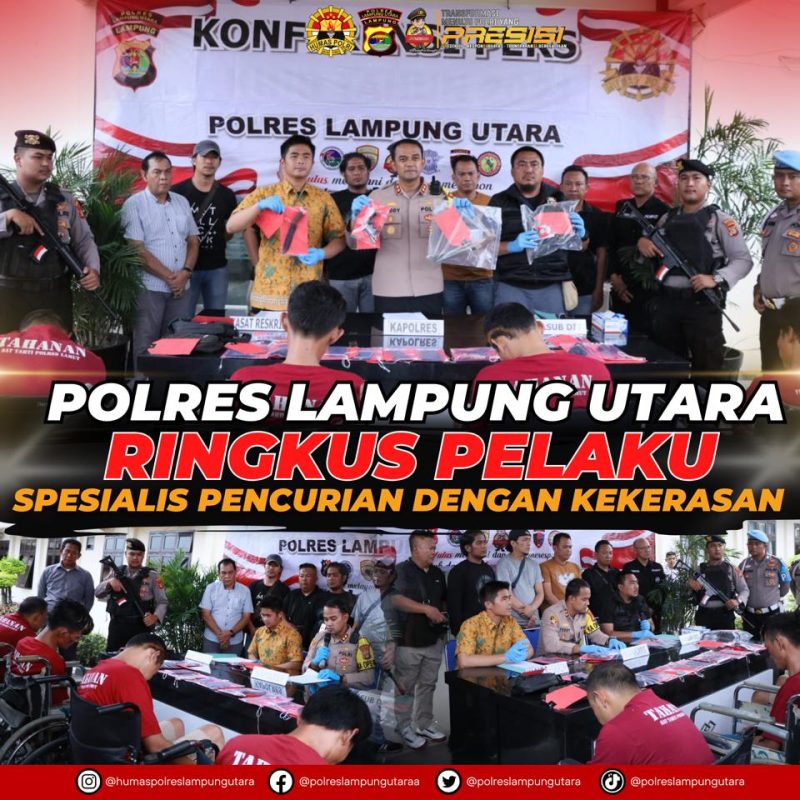 Kapolres Lampung Utara AKBP Teddy Rachesna, S.H., S.I.K., M.Si. menjelaskan mereka ditangkap karena melakukan aksi perampokan di salah satu mes pekerja proyek di Desa Sidomulyo, Kecamatan Bukit Kemuning, Lampung Utara pada tanggal 2 September 2023 lalu.